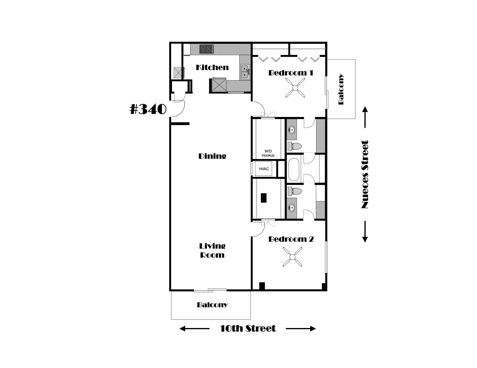 Our apartments are either 2 bed/2 bath or 3 bed/3 bath. Each has a balcony, large dining and living areas, and stainless kitchen appliances. Each unit has a washer/dryer hookup.